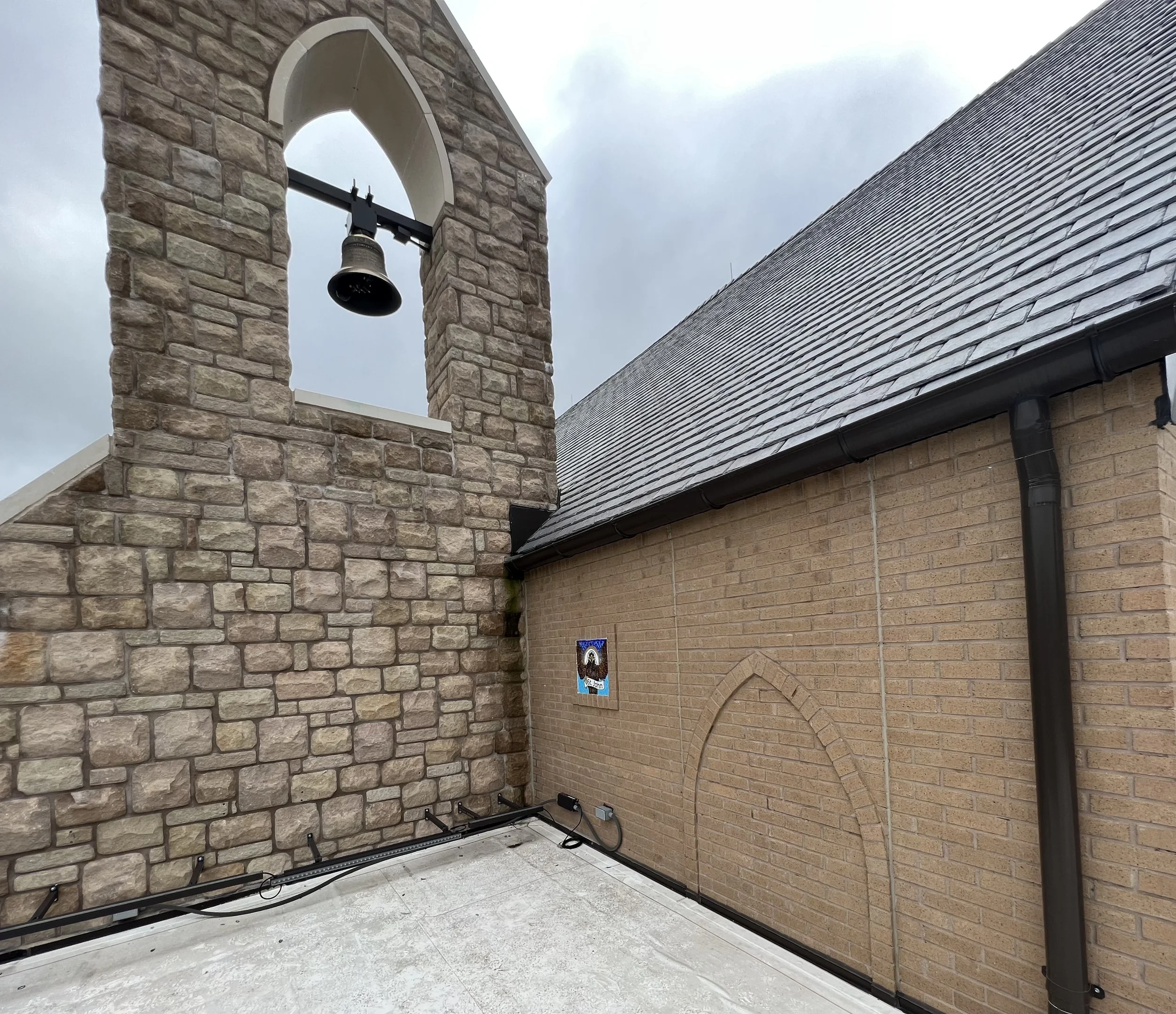 I hired an assistant for the installation and promptly put her in charge of safety. We scheduled the installation, and when the weather was ready, I bit the bullet, climbed the stairs and found – a safe situation. No need for scaffolding or safety harnesses.